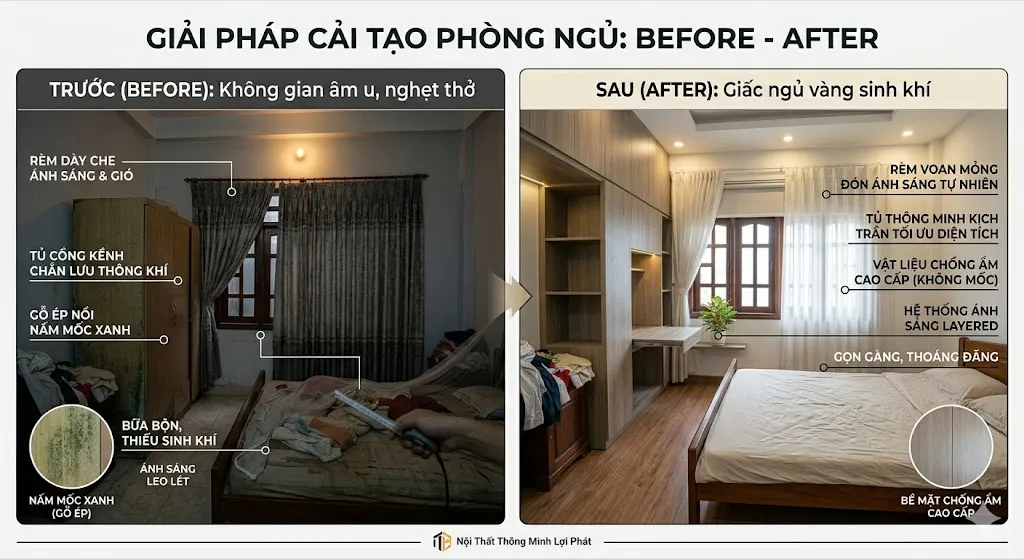 Hôm nay, thông qua dự án cải tạo phòng ngủ cho gia đình anh Hoàng, Nội Thất Lợi Phát sẽ chia sẻ những bí quyết thiết kế nội thất phòng ngủ Cần Thơ sao cho thoáng đãng, mang lại giấc ngủ sâu và trọn vẹn nhất.