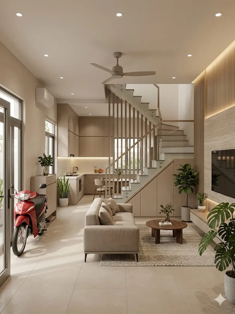 (Bản vẽ thiết kế 3D nội thất nhà phố hiện đại tại Cần Thơ do Lợi Phát thực hiện gói AI cơ bản.)